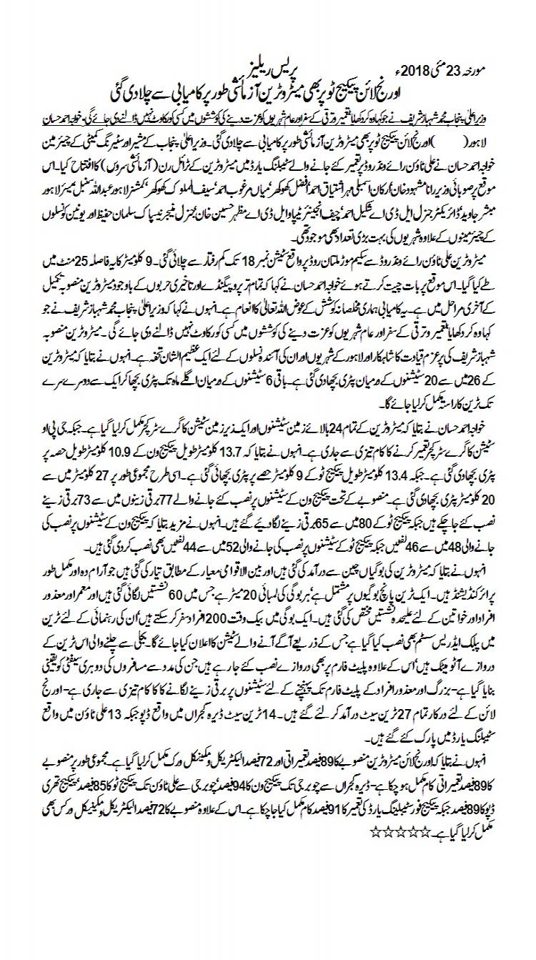 The Metro Train Trial was successfully run on the Orange Line Package.
