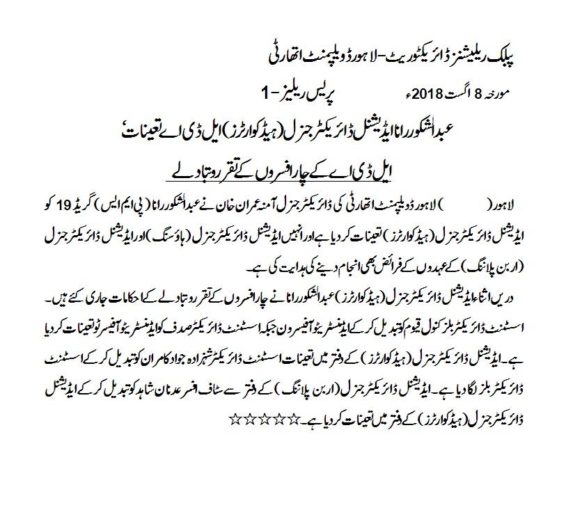 Abdul Shakoor Rana Appointed as Additional Director General Head Quarter in LDA