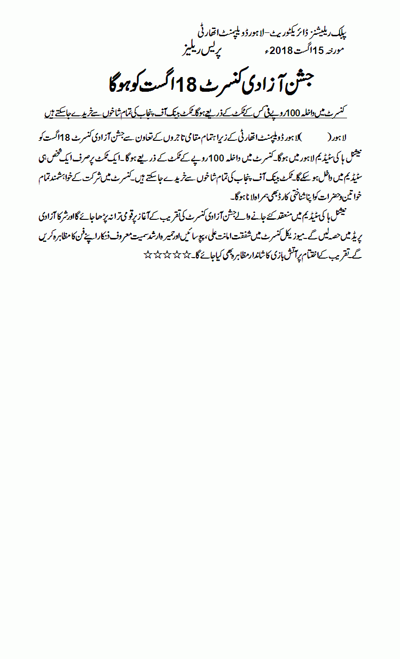 The Jashan-e-Azadi Concert’ will be held on Saturday, 18th of August 2018