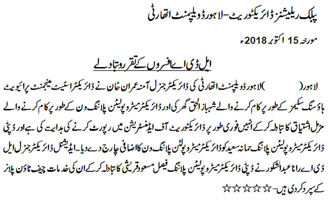 Transfer postings of LDA officers