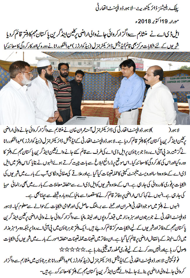 ADG (HQ), LDA, Abdul Shakoor Rana visited the office of Clean and Green Pakistan Campaign at PIA Road, Johar Town.