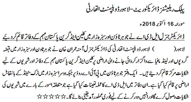 DG LDA establishes two offices for Clean and Green Pakistan Campaign