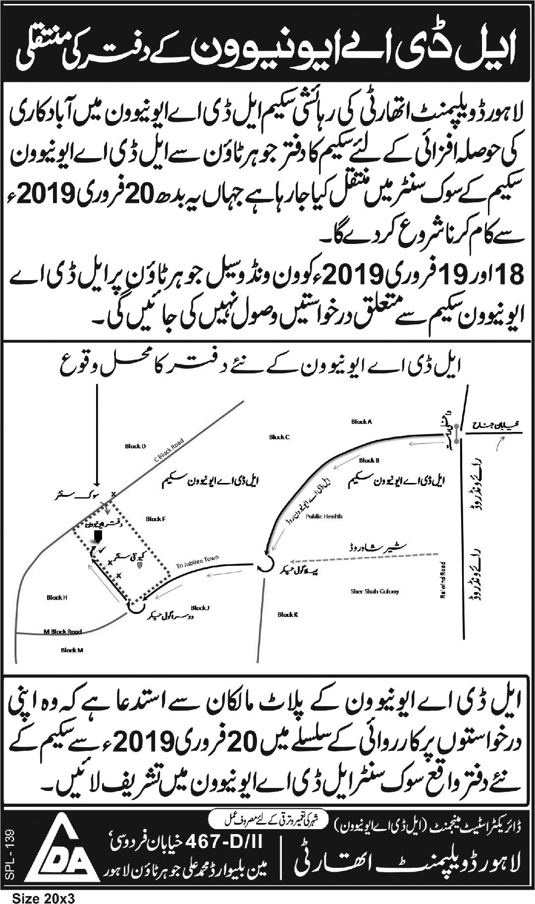LDA Office M.A Johar Town Lahore.