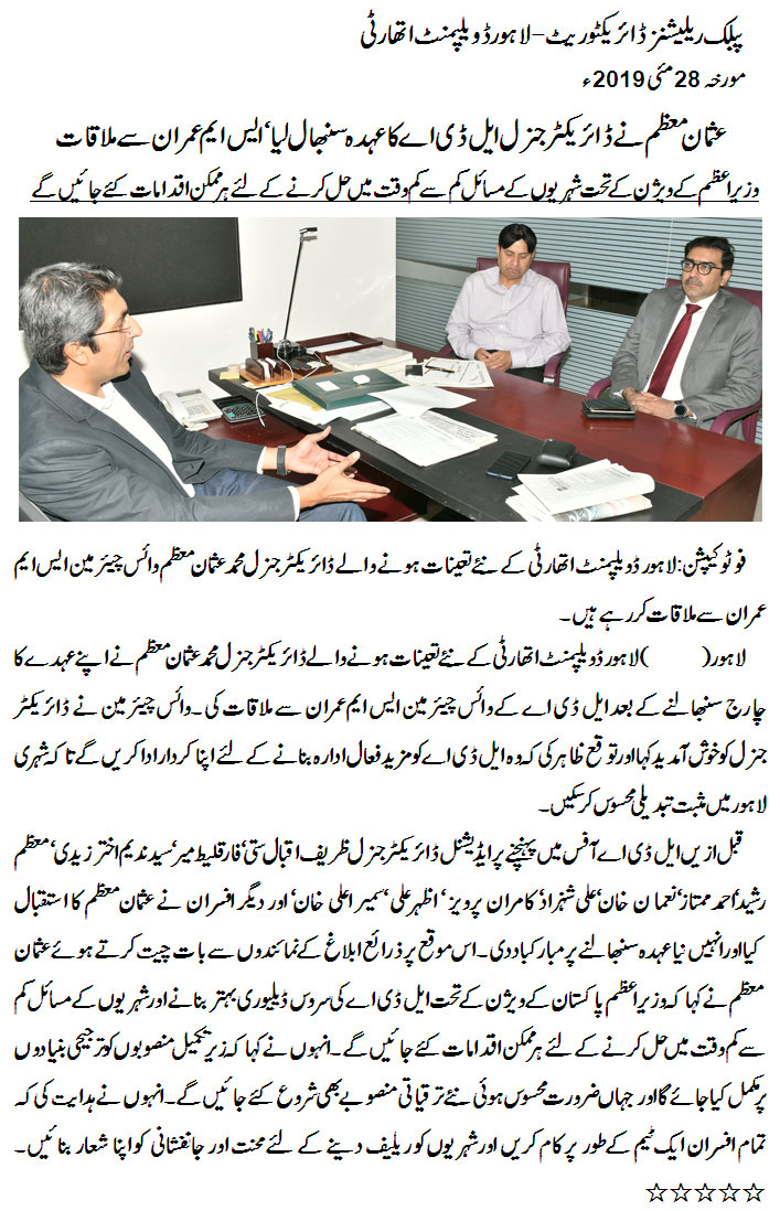 The newly appointed DG of LDA Usman Muazam assumed the charge.