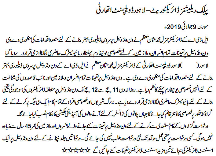 DG LDA approved the Initiatives to enhance the delivery services at one window cell.