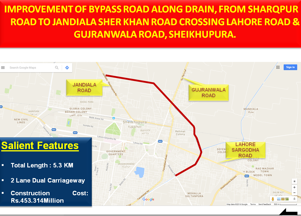 It will be a model road of Lahore that is being constructed similar to the Main Boulevard Gulberg. An 18 ft Median in the center of the road and a 45 ft wide green belt will add to the beauty of the road. Sodium lights erected in the middle will adequately illuminate the road. A foot path runs along the road in its entire length.