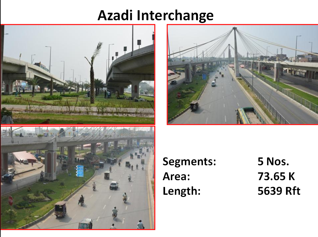 Shalimar Interchange is a state of the art project, conceived by the Government of Punjab, planned by the LDA / TEPA, designed by NESPAK and constructed by Frontier Works Organisation. It is the first 3 level interchange in Punjab over the canal and the railway line and comprises of a 1.6 km Flyover, 2 Underpasses, 2 Ground Level Bridges and 11 km service roads around the site.